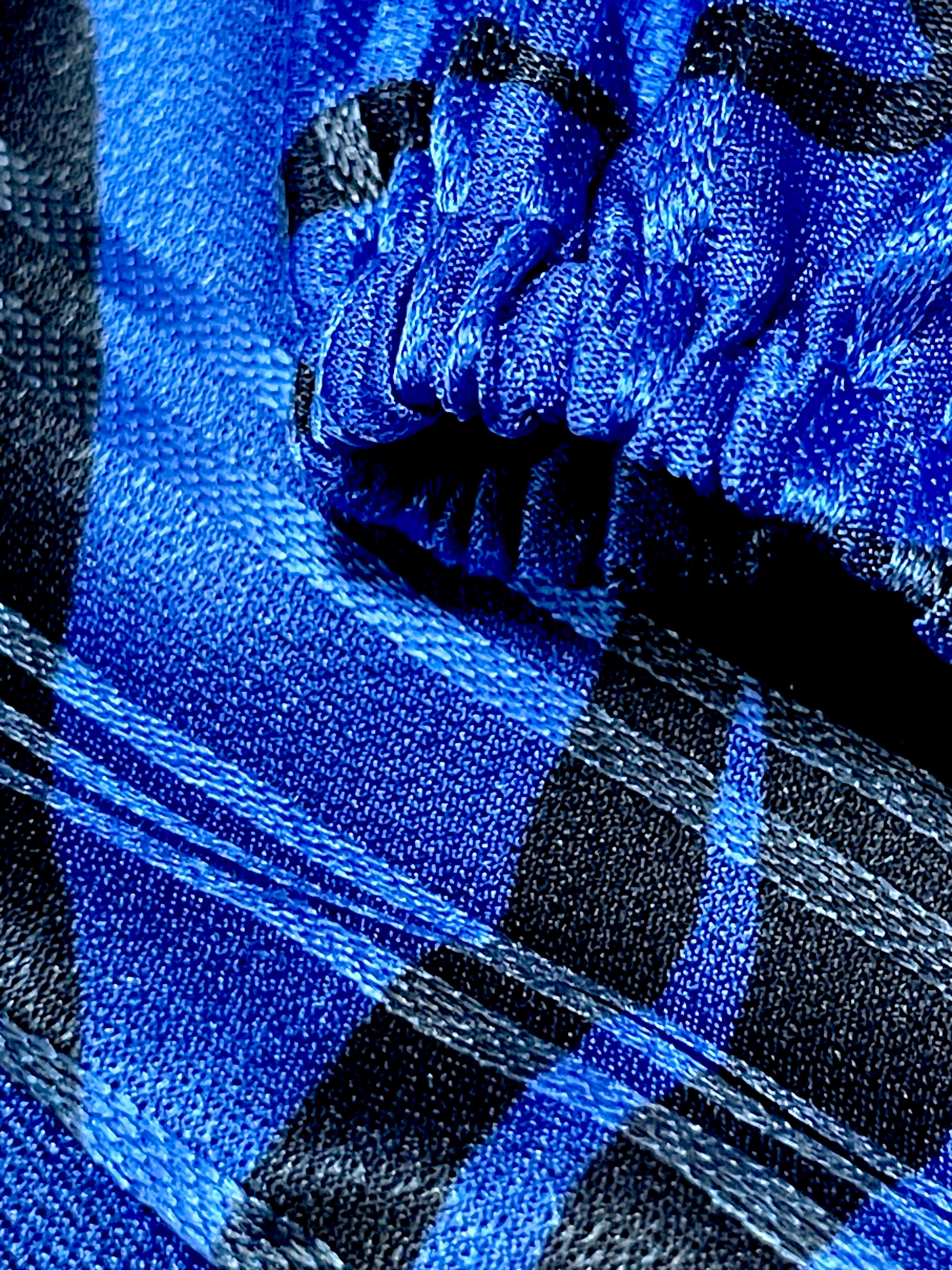 アート柄 ストライプ織り模様 フロントレース装飾 ブルー ブラック ウエストゴム レトロ USA古着 ヴィンテージワンピース | チエルアルコ ヴィンテージワンピース・レトロ・古着 chieruaruko