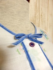 襟ぐり・フロントセンター部分にはブルーカラーの