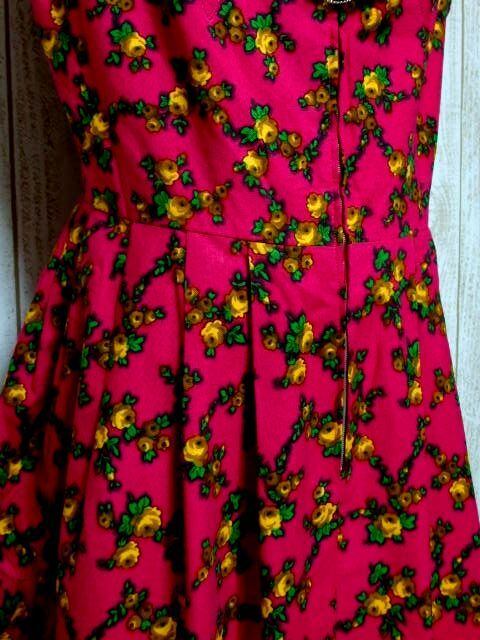 ディアンドル ヨーロッパ古着 アンティークフラワープリント♪フロントジッパー×レトロボタン×チェーン装飾★大人クラシカルなチロルワンピース ドイツ民族衣装フォークダンス オクトーバーフェストにもおすすめ ☆