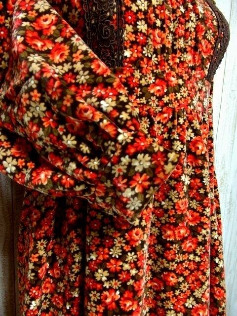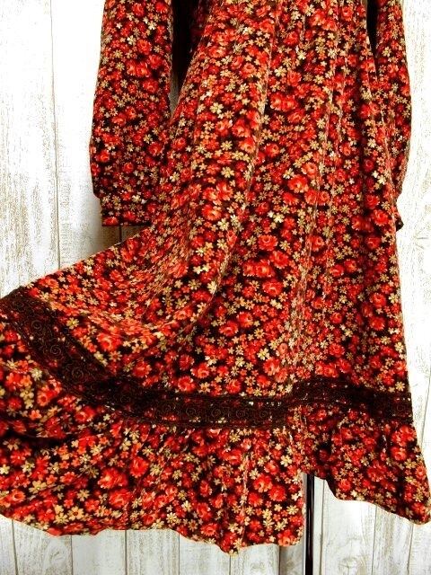 ヴィンテージワンピース,古着 レトロ ワンピース 小花柄 秋冬 長袖 60年代 70年代〈op3786〉