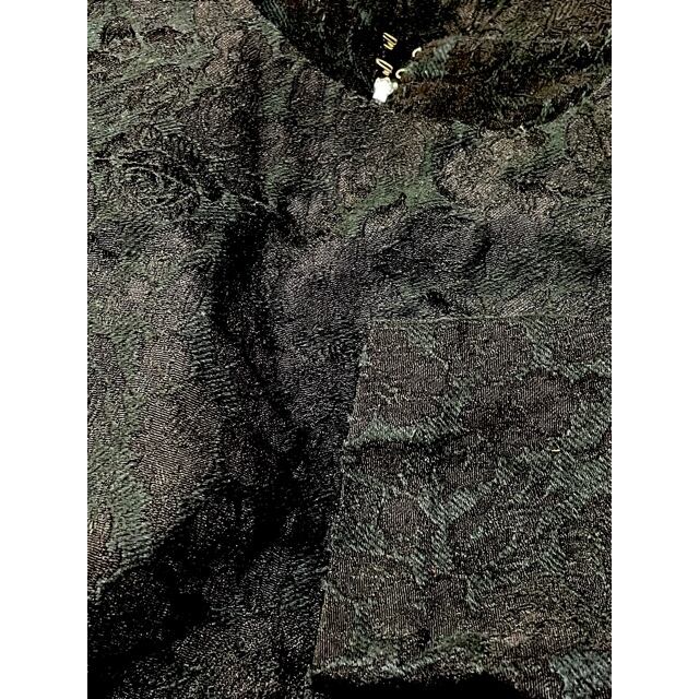 大人クラシカル 凹凸花模様織り ブラック 長袖 レトロ ヨーロッパ古着 ヴィンテージドレス