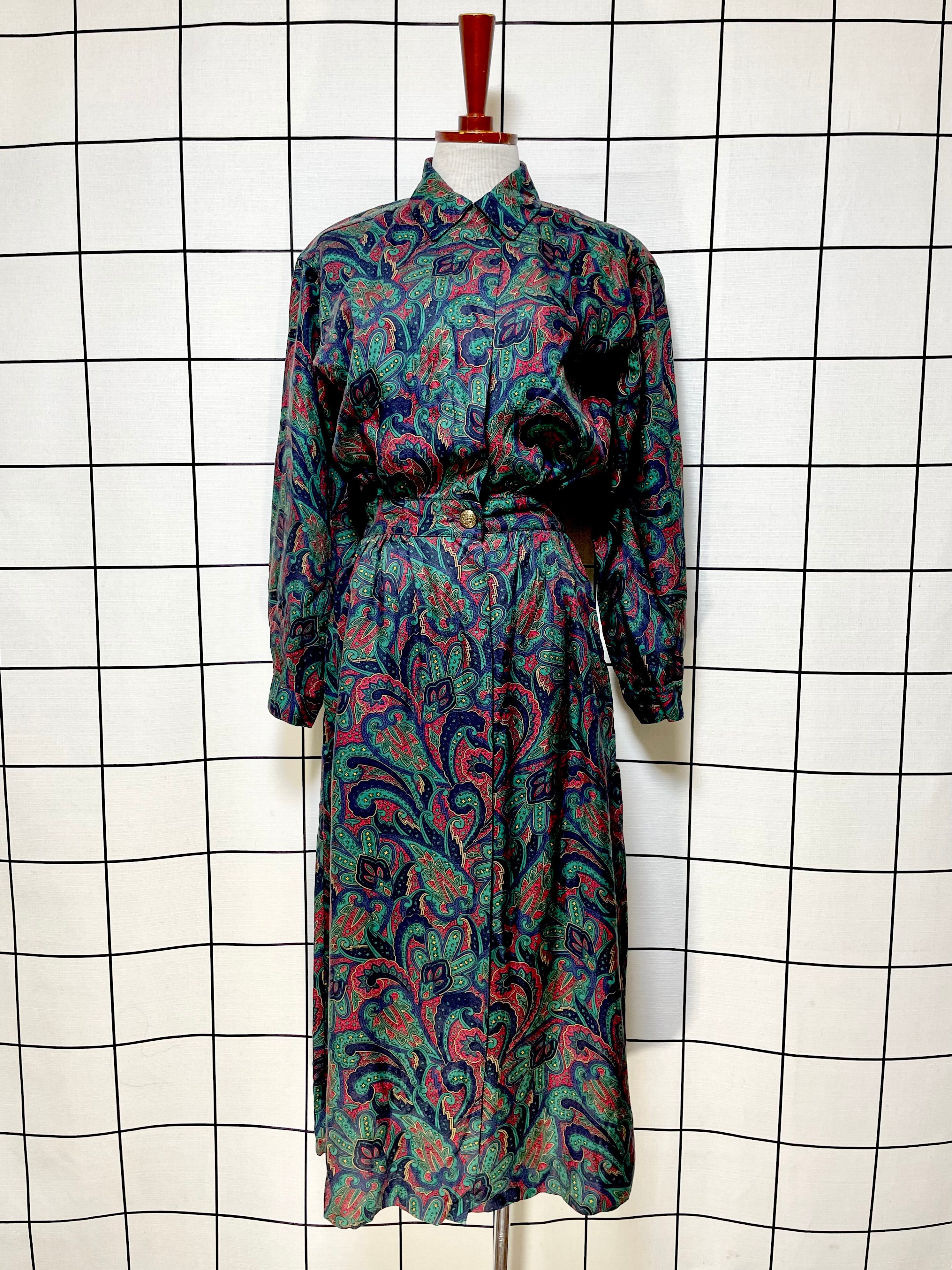 ペイズリー 前開き ウエストゴム レトロ アメリカ古着 ヴィンテージワンピース