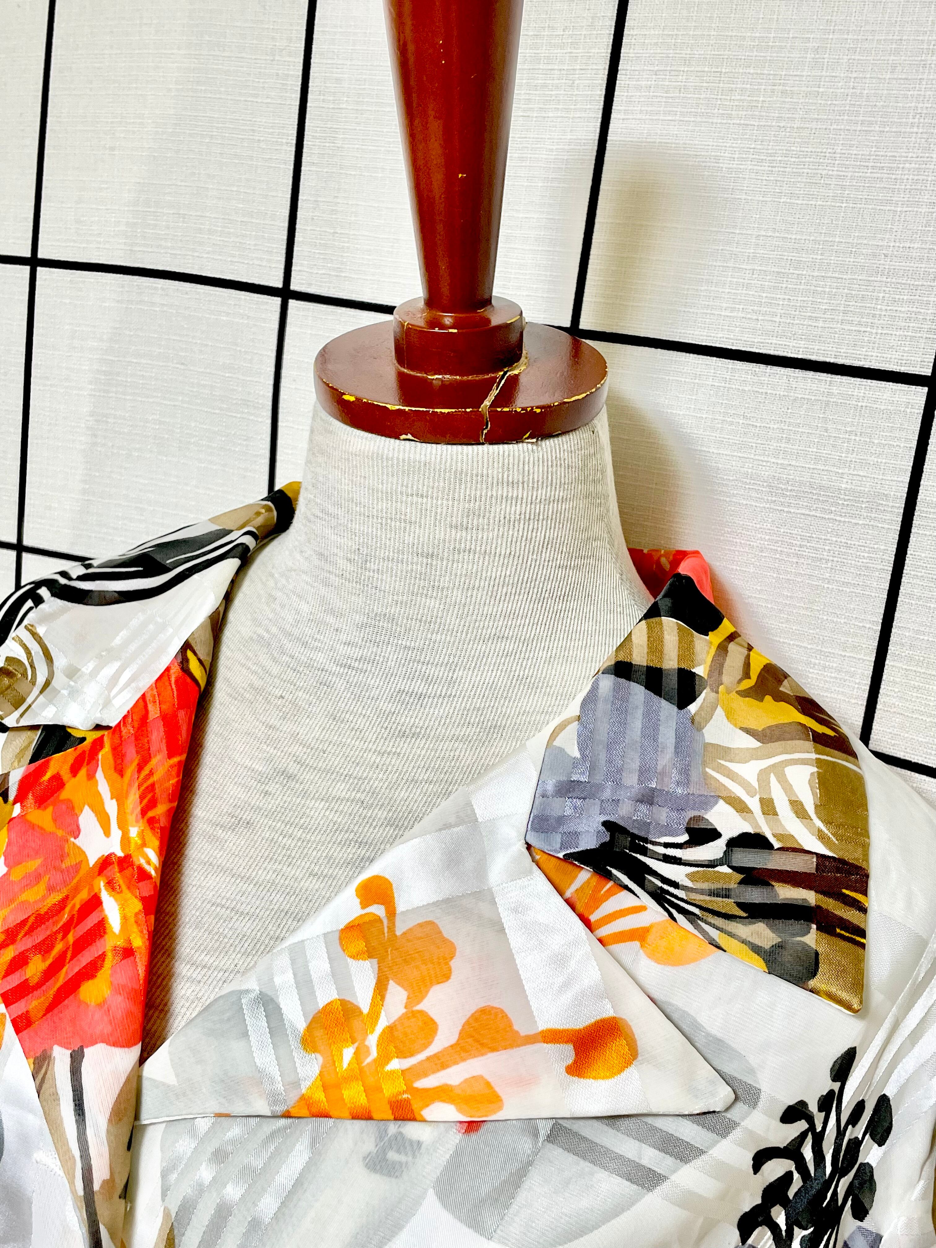 花柄 濃淡の効いたチェック柄 ホワイト 白 パーティー衣装にもおすすめ 長袖 レトロ クラシカル ヨーロッパ古着 ヴィンテージドレス | チエルアルコ ヴィンテージワンピース・レトロ・古着 chieruaruko