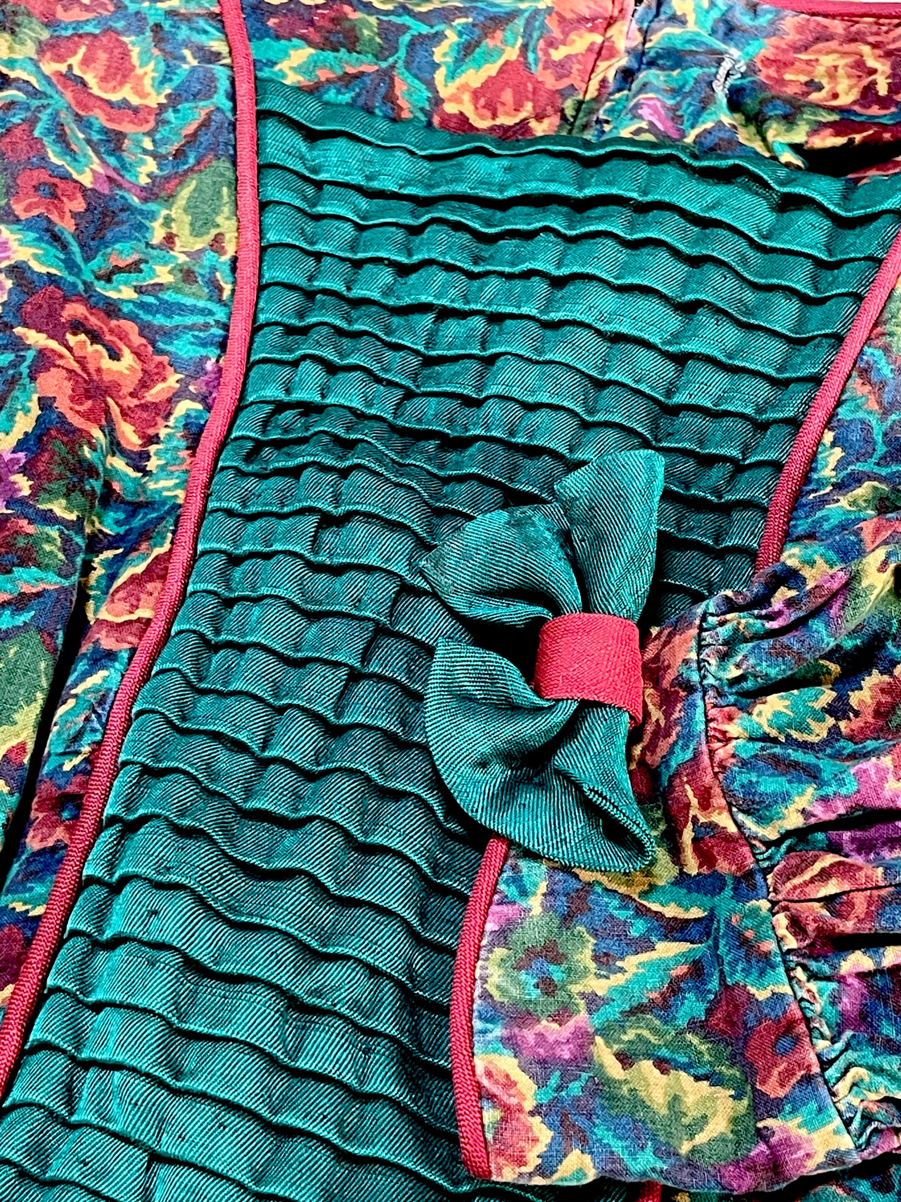 花柄 フロントタック 袖先リボン TALON レトロ USA古着 ヴィンテージワンピース